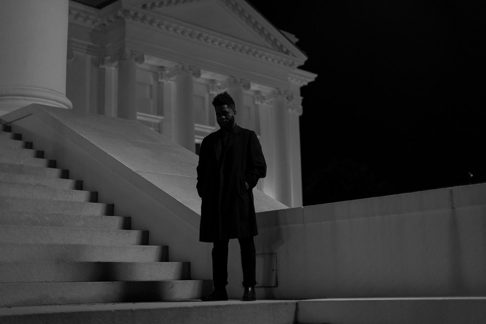 A ROSE BLOOMS IN TORRENTIAL DOWNPOUR; AN ONLOOKER FROM A DISTANT ROOFTOP.